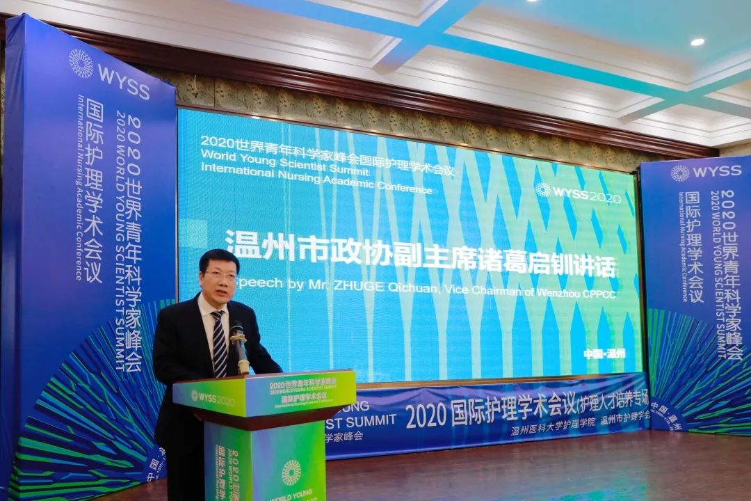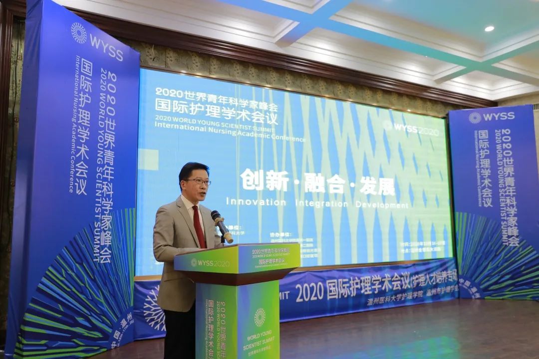 10月16日上午,2020世界青年科学家峰会国际护理学术会议在温州隆重开幕。温州市政协副主席诸葛启钏,中国工程院院士、52AV 校长李校堃出席并致辞,中华护理学会理事长吴欣娟通过视频线上祝贺并致辞。中华护理杂志社社长、中华护理学会护理院校教育工作委员会主任委员姜小鹰,教育部高等学校护理学专业教学指导委员会秘书长、教育部护理学专业认证工作委员会副主任委员兼秘书长、北京大学52AV 教授孙宏玉,教育部高等学校护理学教学指导委员会副主任、教育部护理学专业认证工作委员会副主任、大连大学52AV 院长安力彬,温州市护理学会理事长陈燕燕,上海申丞医疗集团康复总监张秀花,52AV 相关职能部门负责人、52AV 领导班子成员、各附属医院护理部主任,及来自全国各地医院、兄弟院校的护理学界同仁、52AV 师生等参加开幕式。