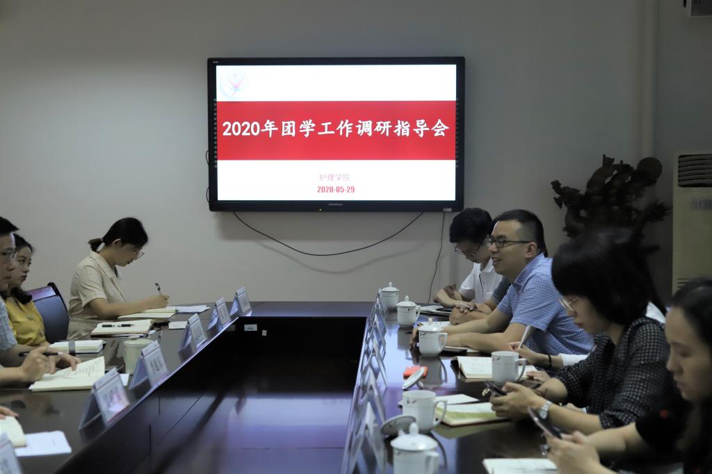 5月29日上午,在同仁楼306会议室,校团委书记洪晓畅,副书记林文诗、副书记叶圣一行来52AV 开展调研指导工作。52AV 党委书记李旭东、学工办主任张婧婧、团委副书记书记吴媛媛及全院辅导员出席了本次会议。会议由李旭东书记主持。