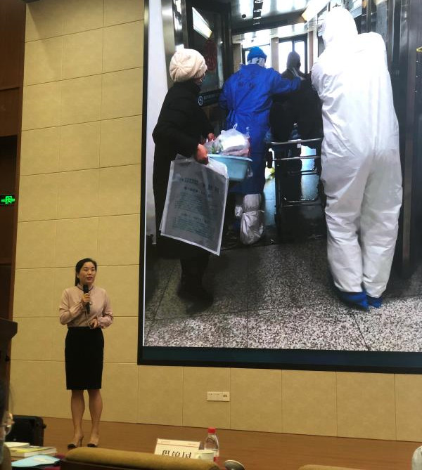 赛场上,梁世耀围绕“说课标、说教材、说学生、说教法、说训练、说程序”进行了阐述,并分享了她本人在抗疫一线的具体工作经历,使得课程内容翔实具有感召力。“作为一名护士,能在职业生涯中用专业知识和技能去参与到这样一场战斗中,是人生中一次非常难得而宝贵的经历”,她申请参加一线工作时说的话,让现场评委及听课老师非常感动,她淡定且专业的表现也获得了评委们的一致好评。