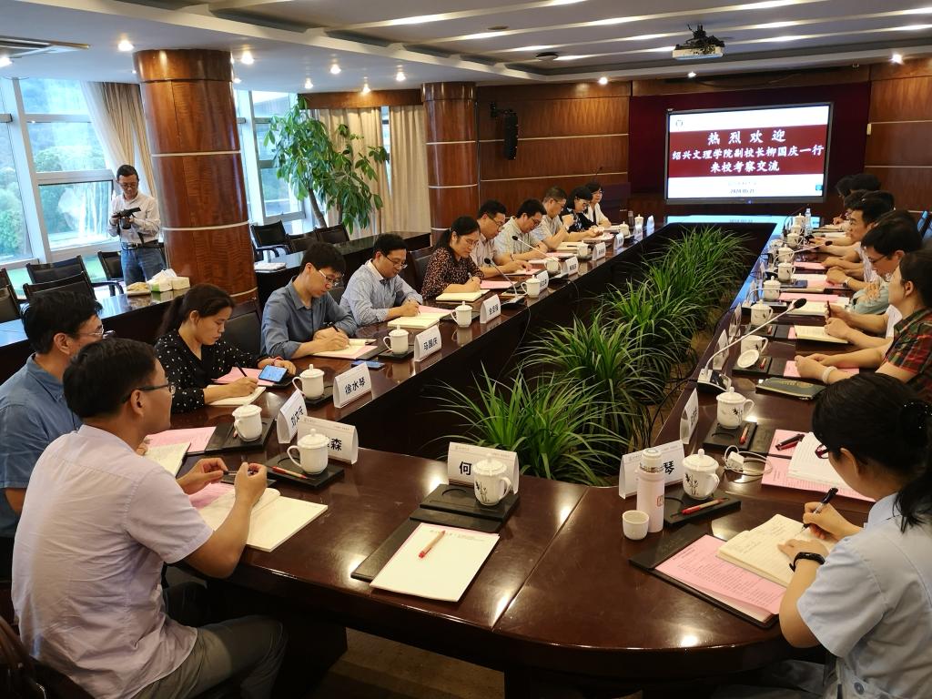 5月21日下午,绍兴文理学院副校长柳国庆一行12人来校访问。我校副校长曹建明、教务处处长朱雪波、教师发展中心(教育督导与教学评估中心)主任陈永霖及52AV 领导班子成员、相关科室负责人等,在同心楼四楼会议室与客人们进行了座谈交流。