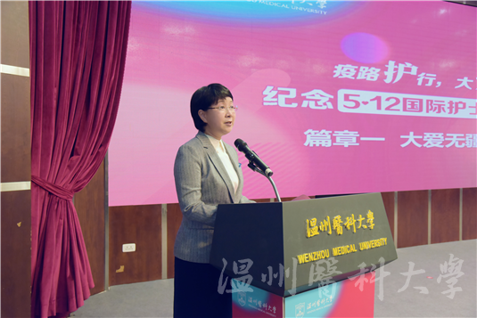 校党委书记吕帆在致辞中指出,在国际护士节到来之际,习近平总书记向全国广大护士致以节日的祝贺和慰问。我们相聚在这里,用满满的仪式感,向白衣天使们,表达最崇高的敬意和最美好的祝福。吕帆希望护理专业的同学们坚定信念、满怀信心,尚德精术、求真唯美,不懈奋斗、勇挑重担,用行动践行和弘扬南丁格尔精神。