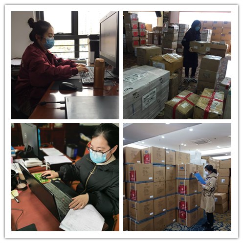 在其后的一周时间里,陈琦老师一直忙于做物资出入库的数据录入、开具捐赠物资接收证明等工作。李爱璋、潘莹莹两位老师则在金悦丽嘉酒店协助做捐赠物资的整理和出库接待等工作,甚至成天当起“搬运工”。陈军老师2月22日开始“上岗”,协助做了半个月的捐赠物资出入库等工作。