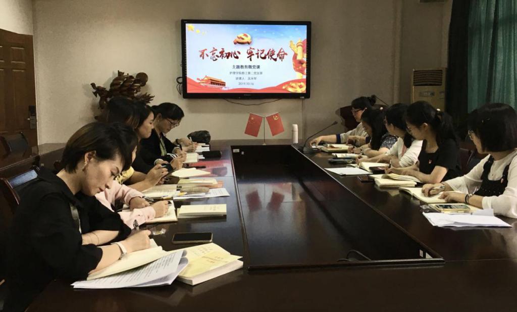 辅导员吴东方、夏冰凌,实验员项彬彬分别带领大家朗读了《习近平关于“不忘初心、牢记使命”论述摘编》的部分章节,党员教师们结合自身实际发表体会,并许下践行“不忘初心、牢记使命”的承诺。学生工作办公室主任金伟琼说,“作为高校教师,我们应该以立德树人作为教育的根本目标,把培养优秀人才作为自己工作的根本任务。尽管任务重,责任大,但是坚守一份初心,坚持在工作岗位上认真负责,相信一定能实现我们的目标和任务。”吴永琴表示,“要用耐心去等待,以身作则,将爱心与责任心融入教育,架起沟通的桥梁,不忘对教学的初心,牢记做学生引路人的使命。”