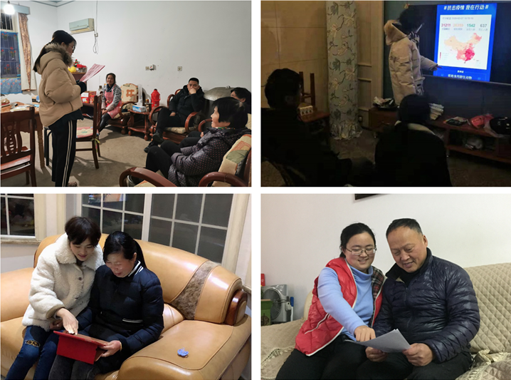 线下,各支部党员利用自己的专业知识,教授家人“七步洗手法”、正确鉴别口罩类型、正确佩戴口罩方法。利用网络资源,带领家人主动学习包含认识疾病、预防疾病、发现疾病、治疗疾病等内容的新型冠状病毒相关知识。党员们手写倡议书,通过亲友群、家庭群发起倡议,主动带领家庭成员响应相关防疫政策的落实。