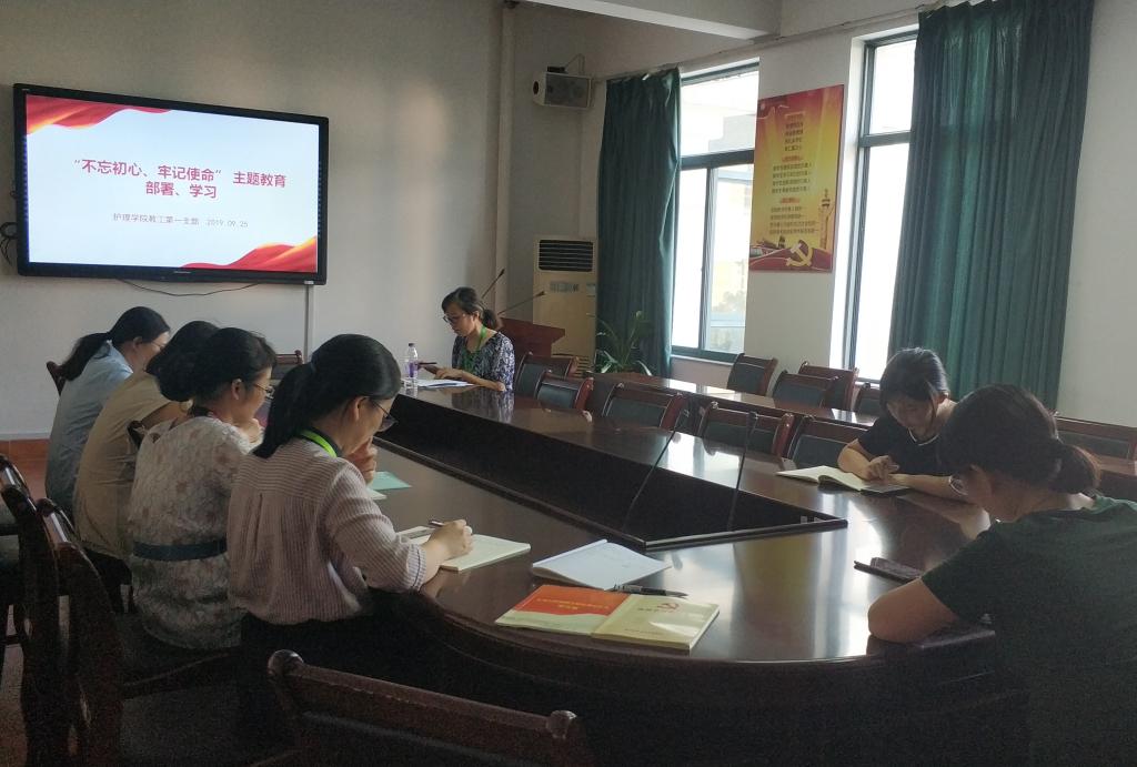 2019年9月25日下午15:50,52AV 教工第一党支部在7c306会议室开展“不忘初心、牢记使命”主题教育部署和专题学习会。会议由支部书记许虹波主持,支部全体成员参加会议。