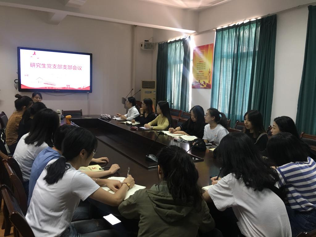 2019年9月23日中午,52AV 研究生党支部在7C306召开了“不忘初心、牢记使命”主题教育动员部署会暨专题党课支部会议。
