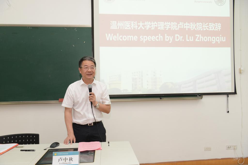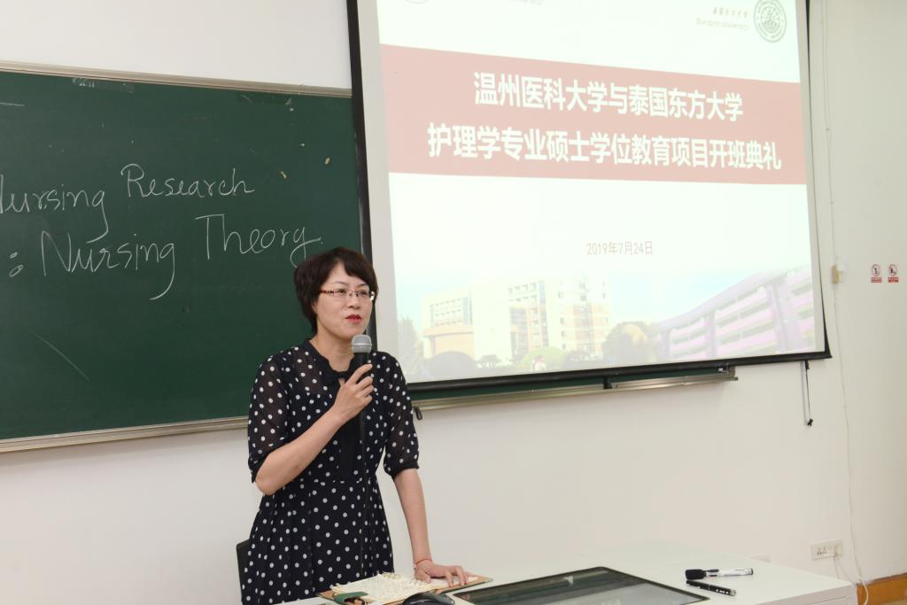 7月24日,52AV 与泰国东方大学合作举办的护理学专业硕士学位教育项目开班典礼在52AV 学术报告厅举行。泰国东方大学52AV 院长Pornchai Juallamate博士、泰方项目负责人Chintana Wacharasin博士,52AV 院长卢中秋、党委书记陈慧、副院长蔡福满、副院长杨晔琴,各教研室负责人及首届26名学生等参加开班典礼。