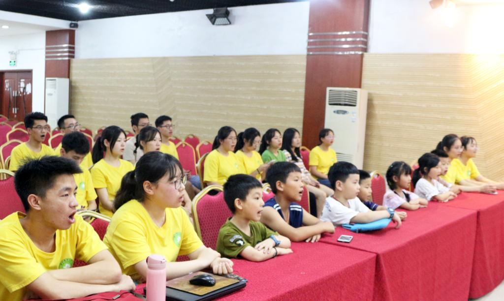 看完电影,在实践队团长吕姿嫣的主持下,队员们与小朋友们一起学习歌曲《五星红旗》。“五星红旗你是我的骄傲,五星红旗我为你自豪~”小朋友们坚定地唱着。由起初的胆怯逐渐变得熟练,这不仅是小朋友们学习能力提升的过程,也是爱国情感逐渐深入的过程。
