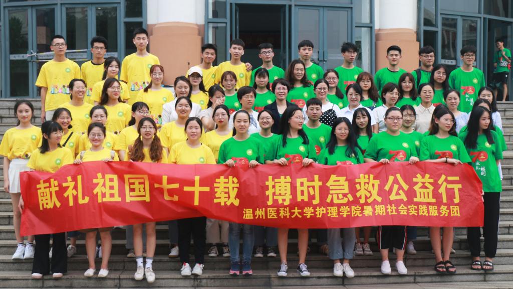 之后,“献礼祖国七十载,搏时急救公益行”瑞安社会实践团的指导老师李萌老师发表了演讲。老师用亲切的语调称赞同学们为活动顺利进行所做的努力,同时也提出了树立安全意识,和睦相处,举止得体的要求。
