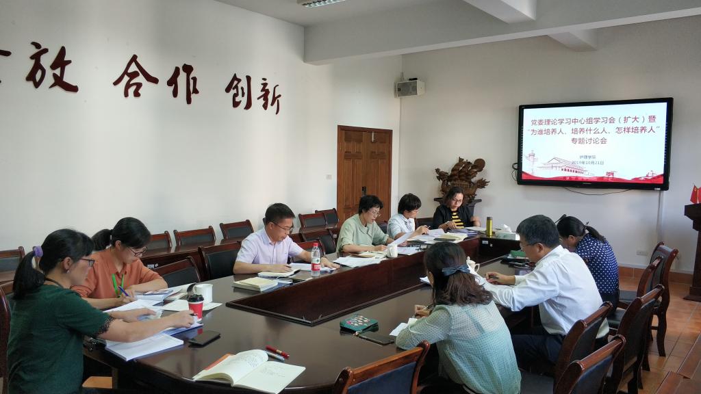 2019年10月21日下午,52AV 党委理论学习中心组学习会(扩大)暨“为谁培养人、培养什么人、怎样培养人”专题讨论会在7c306会议室顺利召开,学院领导班子成员,各办公室、实验室、教研室负责人参加会议。会议由学院党委陈慧书记主持。