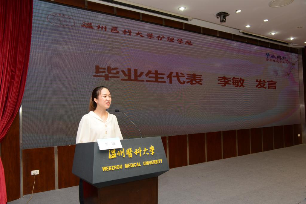 即将踏上硕博连读之路的毕业生代表李敏在发言中深深表达了对学校、学院、父母、老师、同学的感激,对大学时光的怀念和不舍,对未来的憧憬和期待。她说:“求知本是一场孤独的修行,我们要步履坚定地向前走去,才能活成自己当初向往的模样。”