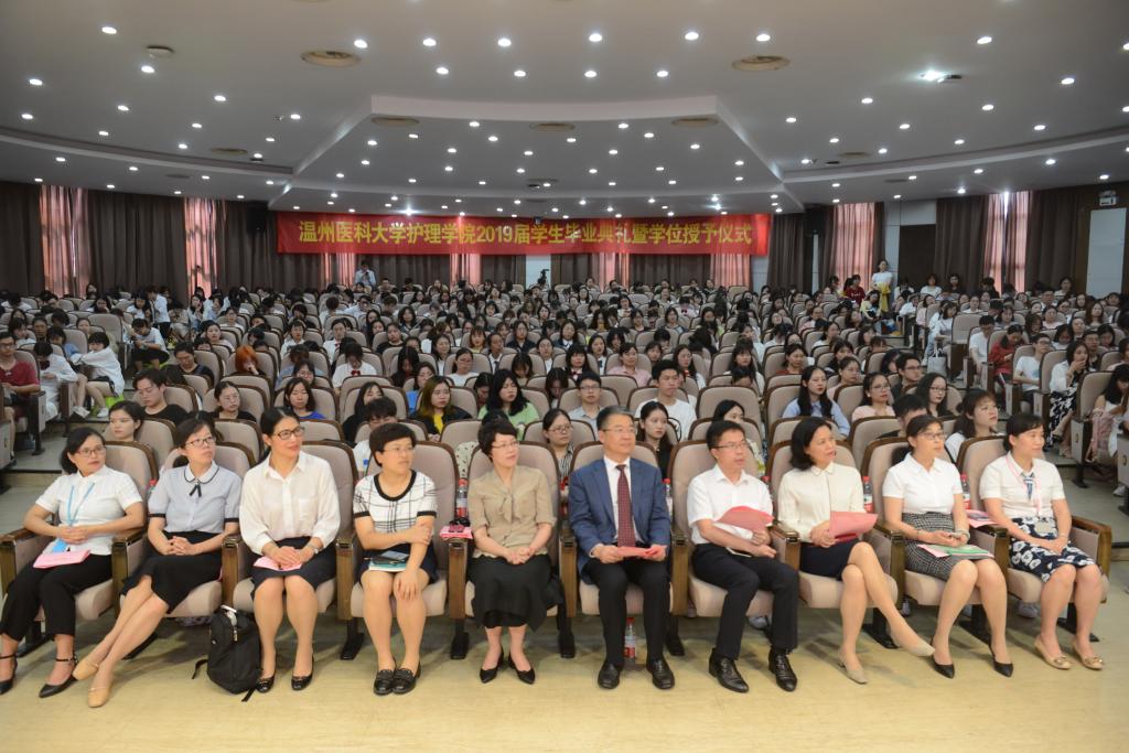 5月27日下午14:00,52AV 2019届学生毕业典礼暨学位授予仪式在旭光厅隆重举行。院党委书记陈慧、院长卢中秋,院党委副书记涂艳玲、副院长蔡福满,以及附属第一医院护理部主任孙彩霞、附属第二医院护理部主任张春梅出席仪式。学院各办公室、教研室老师,2017、2018年级学生代表,以及毕业生家长代表观摩仪式。学院2019届507名毕业生怀着激动的心情参加这场专属于他们的盛典。