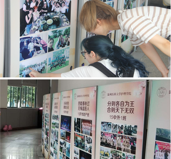 “以梦为马,不负韶华。”“我们站着,不说话,就很美好。”“四载春秋过,无悔温医人。”……旭光厅的走道上,“我的大学·我的青春”班级照片展吸引着同学们驻足品味,纷纷回想起当年的点点滴滴。