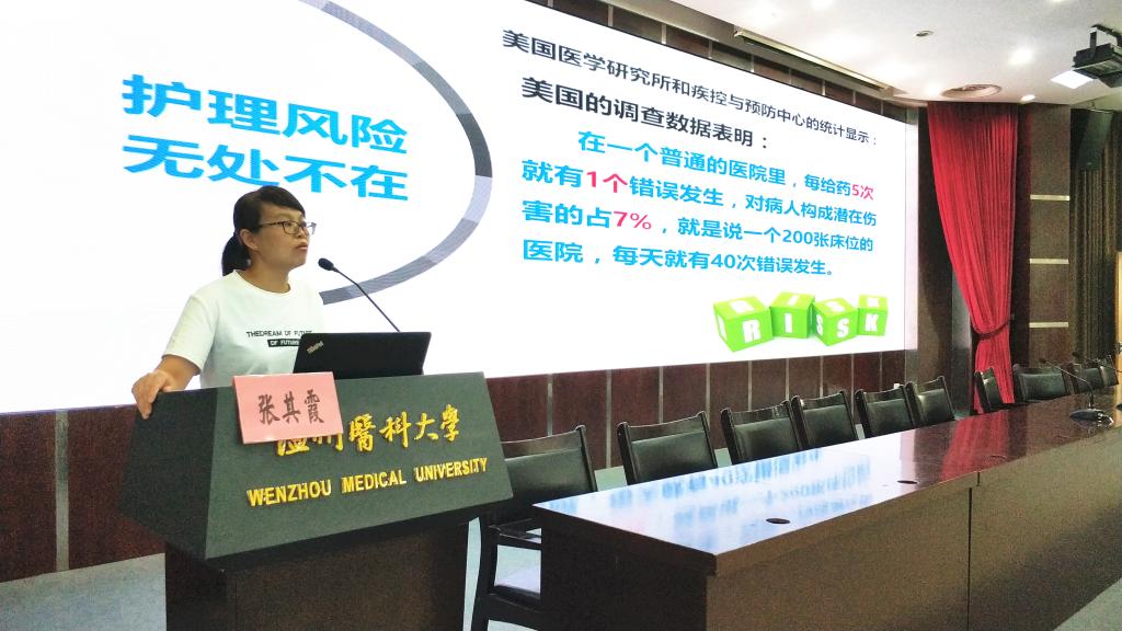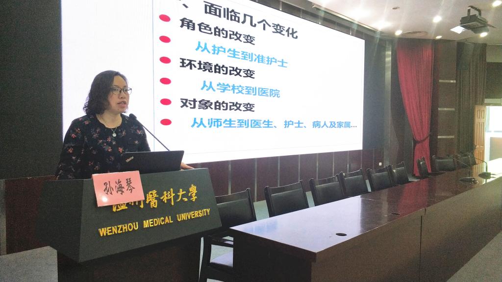 会上,张其霞老师从“护理安全与职业自我防护”和“临床实习注意事项”两个方面展开指导,她分析了护理安全的重要性、安全隐患的因素,结合一些临床的安全事件,强调了职业安全教育的重要性和必要性。与此同时,张老师针对实习生们提出了实习要求,并讲解了请假制度和近期的热点问题。