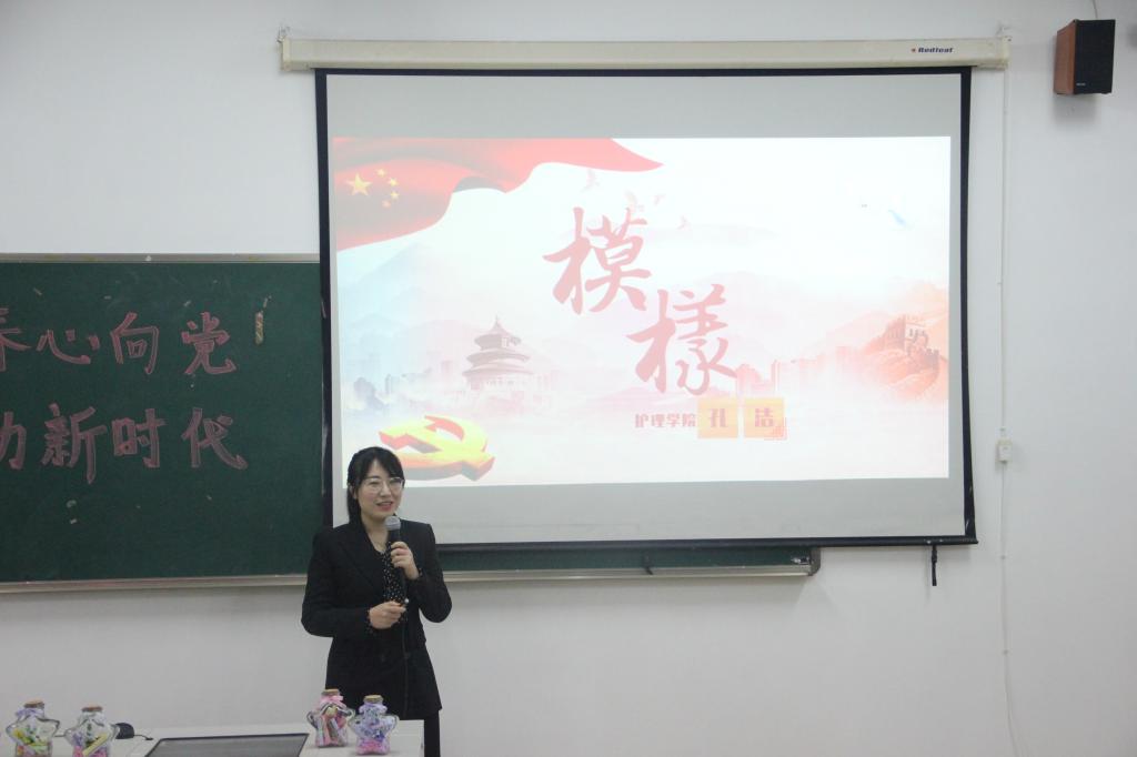 接着,毕业生党员代表殷原芳上台发言,表达了对学院领导和老师们的感谢和敬意,并结合自己的成长经历,勉励低年级党员们乘着时代的春风,放飞青春的梦想,以社会主义建设为使命和担当,为中华民族的伟大复兴努力奋斗。