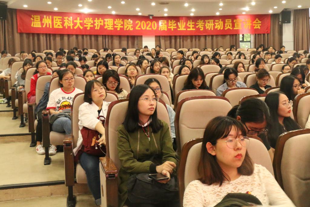 为加强学生对护理行业发展需求的了解,鼓励学生考研深造,5月13日晚上六点,52AV 2020届毕业生考研动员宣讲会在旭光厅顺利举行。会上,52AV 卢中秋院长作考研专题动员宣讲,2019届两位毕业生分享她们的考研经验。