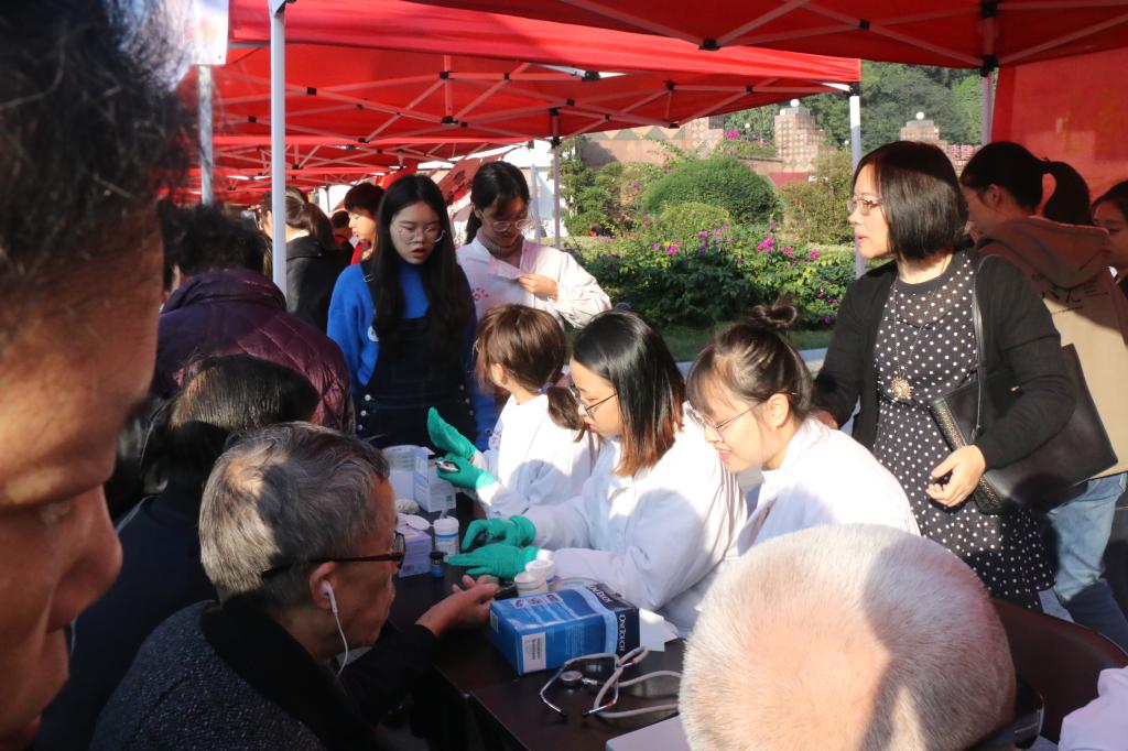 活动吸引了一大批护巢人和社区居民的注意,纷纷打听活动的项目和内容,体验了52AV 师生们提供的血压、血糖检测服务。老师和同学们分成两组为社区居民服务,一组负责测血压工作,一组负责测血糖的工作。师生在无偿服务的同时,也耐心向护巢人解释测量结果、无偿发放急救包,并嘱咐他们平时生活中需要注意的事项,社区居民纷纷为他们的公益行为点赞。此次活动,教工第一党支部和学生第四党支部的师生们还印发了200份健康手册,为社区居民提供心血管疾病、糖尿病等慢性病的健康咨询服务。