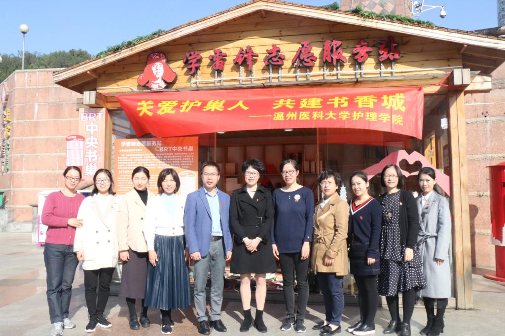 2018年11月24日,52AV 52AV 教工第一党支部、学生第三党支部以及白鸽青年志愿者服务社的师生们早早来到了温州市鹿城区道德广场,进行现场健康体检与宣教,并对BRT中央书巢的书籍进行了整理、消毒。