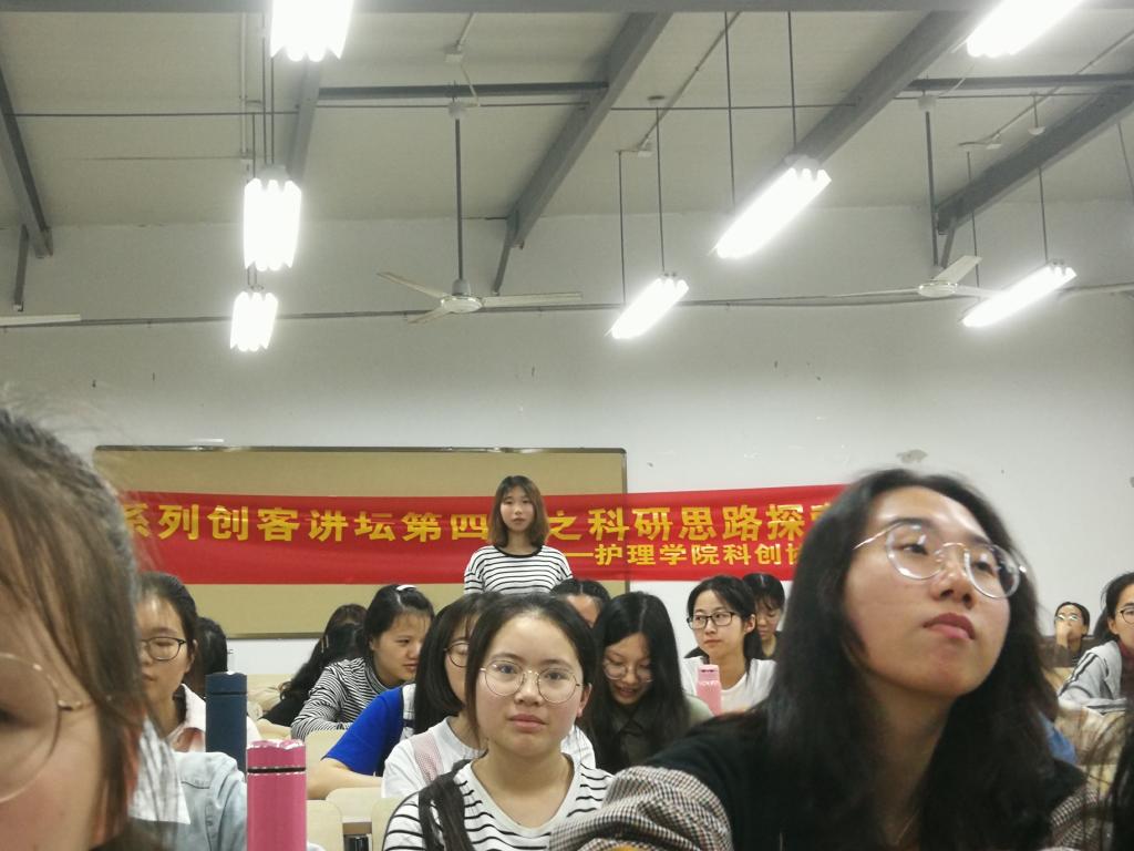 杨老师还介绍了她的科研团队——“杨氏梦工厂”。在这里,她曾经和四十几位护理学生一起做梦,一起生产。她希望这是一个能让人实现梦想的地方,虽然总是迎来送往,但梦想永不消逝。11年的坚持,杨老师和她的团队逐渐壮大,她们对科研的探索不断深入,科研也让她们的奇思妙想得以实现。讲座最后,同学们提出了自己参与科研的一些困惑,杨老师十分耐心地一一解答。