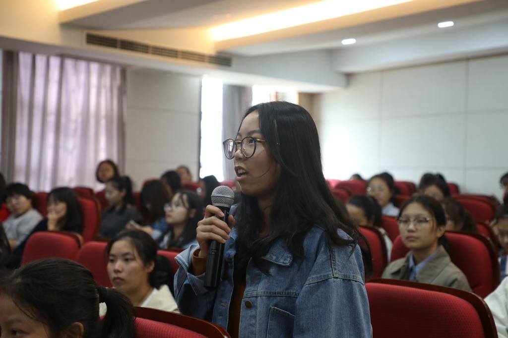 “范老师,你们觉得作为一名男生,从事护理事业有什么优势吗?”“胡老师,范老师,两位学姐都这么优秀,您觉得我们在学校怎么做可以向您二位看齐呢?”“胡老师,现在我们有些同学的专业认同感还是有些不高,您怎么看?………”听了两位嘉宾的分享,同学们纷纷举手畅谈自己的感受和困惑,两位嘉宾在护理事业发展、职业理想对我们提出了建议:不要自己把护理定位放低,对护理事业有一个高定位。现如今的52AV 发展很快,学生培养力度很大,有很多护理讲座和国外交流项目,我们要及时把握学习和拓展视野机会。在校期间可以规划自己未来护士职业生涯,如科研方向、社区发展、护理专科,并为之不断努力,提高自己的专业水平。