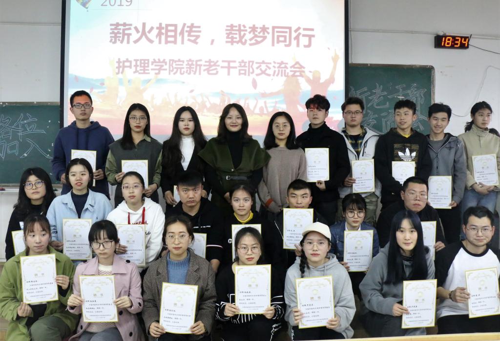 随后主持人介绍了各组织部门的指导老师。为了感谢上一届学生干部们的辛勤付出,老师们为上一届学生干部们颁发了工作聘书,祝福老干部们在新的人生征途上能不忘初心,永攀高峰!