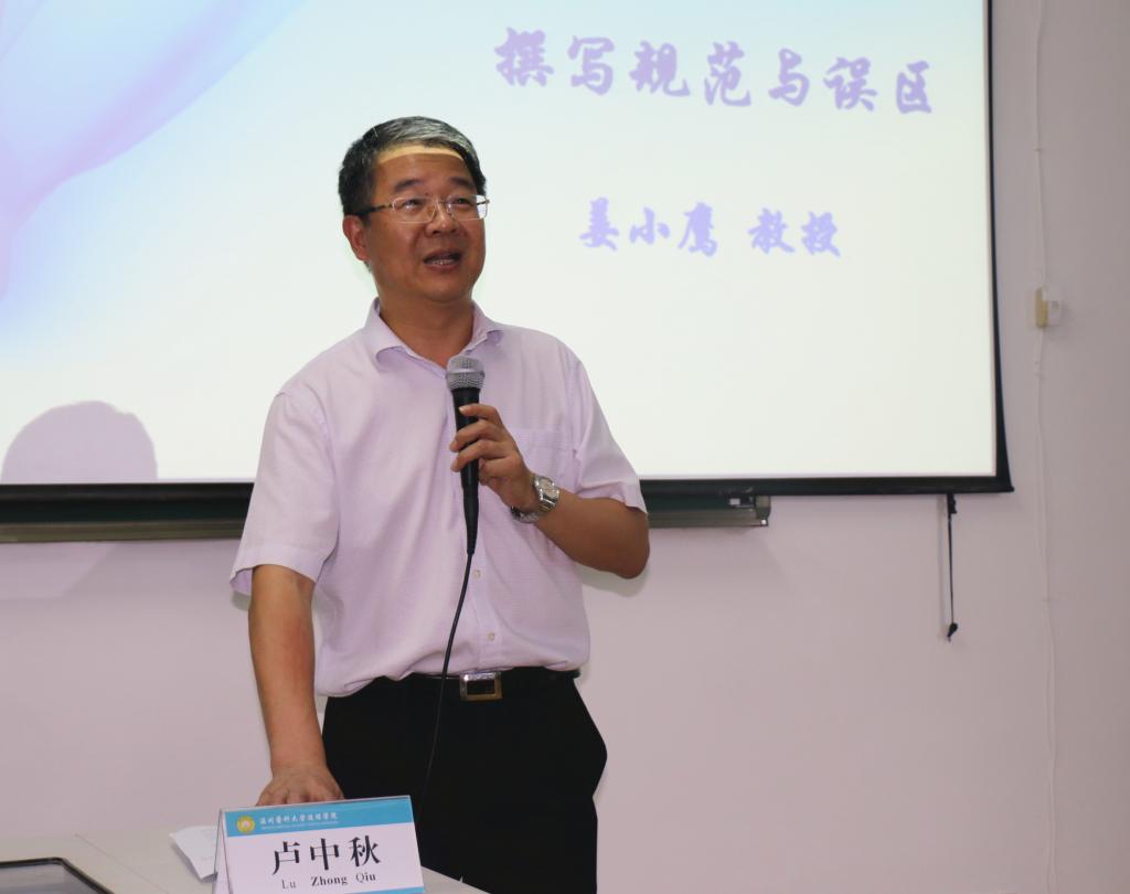 院长卢中秋主持讲座并做总结发言,希望大家在学习护理论文撰写技巧的同时学习姜小鹰教授对护理科研孜孜不倦的精神,在工作中多学习、多积累、多思考、多提炼,厚积薄发,不仅仅从个人发展的角度也从更好地服务于病人和护理学科发展的角度,提升护理科研论文撰写水平,共同推动我校护理学科的发展。