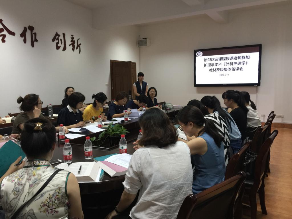 6月19日下午,《外科护理学》新版教材集体备课会在7C306会议室举行。副院长杨晔琴,各附属医院护理部主任、护士长、临床护理骨干,学院相关教师等参加会议。