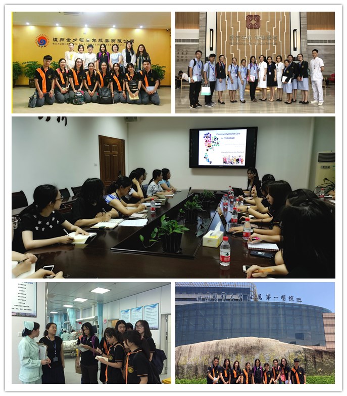 访问期间,帕塔瑞一行参观了学校人体科学馆、52AV 实验中心、附属第一医院、附属第二医院&育英儿童医院、附属康宁医院、瓯海区南白象社区卫生中心及温州市安孝老年护理中心、金夕福老年服务中心等处,并参与了护理学基础综合模拟课程和外科护理综合模拟课程教学。帕塔瑞博士还为52AV 教师、护理临床教师做了两次专题讲座,介绍了泰国卫生医疗体系和泰国东方大学护理学专业课程设置情况,并与现场老师就中泰两国的卫生医疗情况和护理教学情况进行了交流。泰国学生还为52AV 学生做了主题为“学在东方大学”的专题讲座,介绍了在泰国东方大学的日常学习、生活情况。