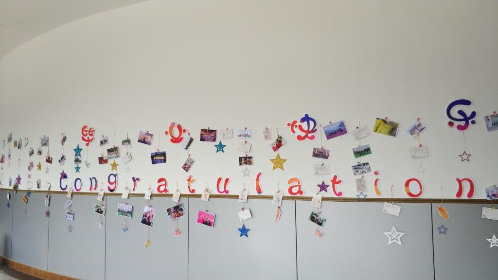 在学位授予仪式上,59位毕业生依次上台向导师鞠躬、握手,接受导师的拨穗,被授予学位证书。毕业生家属们从省内各地来到现场,他们中有父母,爷爷奶奶、外公外婆,也有多年的好友,甚至是未婚夫、男友等。“我的家人都过来了,有他们在,才是最好的毕业礼”14中外1班的洪梦倩同学说。洪同学的妈妈也激动万分:“四年前我送她来报到,今天我迎接她毕业,感觉画上了一个圆满的句号。非常感谢学校和美方的老师,把我女儿培养的这么好!”