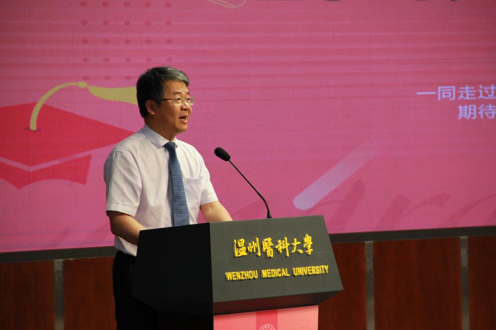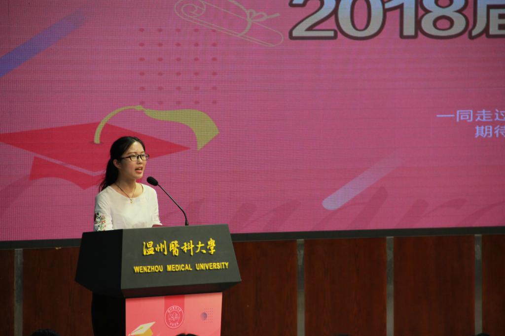 毕业生代表沈璐同学深深表达了对学校、学院、父母、老师、同学的感激,对大学时光的怀念和不舍,对未来的憧憬和期待。“您像一股清风,在书页开合之间,在板书洋洋洒洒之际,在砂轮磨过安瓿之隙,您教导着我们,引领着我们……春秋不长,日月不短,望相见!”一首由毕业生钟林原创,吴应铮、徐宁燕现场演绎的诗歌朗诵《我的故事全是关于您》表达了毕业生们对老师的感恩和赞美。