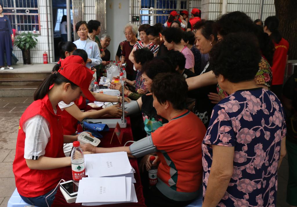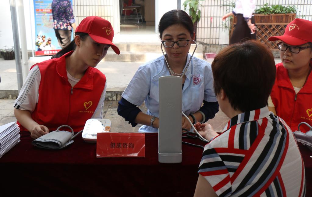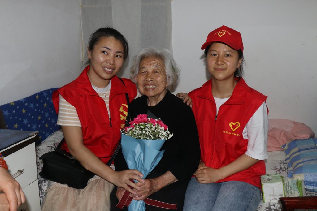 随后,52AV 教工第二党支部党员教师们为老人们进行量血压、量血糖,对糖尿病、高血压的宣教等义诊服务。与此同时,附二医专家现场义诊也在雨花斋同步进行,内容包含测血压、肌性疼痛、中风后康复咨询指导、骨关节痛、腰背痛、骨质疏松预防、骨密度测试等。附二医护人员还和52AV 学生志愿者组成五支医疗服务小分队为五户不方便下床下楼活动的孤寡老人提供上门服务。参与此次活动的志愿者感慨道:“能送上一份爱心一份温暖总是让人开心的,看到91岁的老奶奶提及已过世的女儿潸然泪下,我紧握她的手,告诉她我们就是她的女儿时,她内心是充实感动的。我想这样就是值得的:感恩我们的母亲,关爱呵护孤寡老人。最后祝所有妈妈母亲节快乐!”