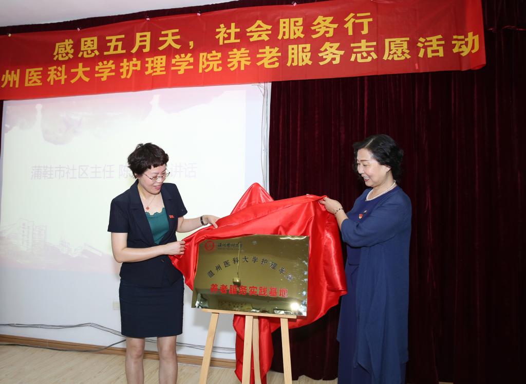 5月13日下午,在母亲节来临之际,52AV 首个“社区养老护理志愿服务实践基地”在蒲鞋市社区正式揭牌,52AV 党委陈慧书记、涂艳玲副书记,蒲鞋市社区陈爱飞主任出席揭牌仪式。52AV 教工第二党支部全体党员教师,52AV 附属第二医院的护士长一行以及52AV 白鸽青年志愿者协会的二十余名志愿者参加仪式,并联合开展了以“感恩五月天,社会服务行”为主题的养老服务志愿活动。