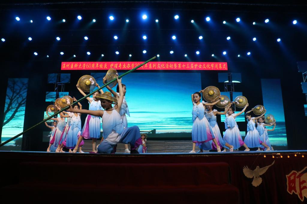 舞者化身青春的使者,时代的靓点,灯光的精灵,给观众带来无限的震撼。和着音乐,踩着鼓点,活力四射的舞蹈《这就是街舞》为我们掀开了青春的篇章。《重返十七岁》的合唱,勾起年少的时光。那夏日午后校园不休的蝉鸣,青涩年华里害羞的回眸,我们所有的相遇,正是刚刚好,刚好遇见护理的真善美。子善学堂小朋友们的一曲《月下轻舟泛渔歌》绵绵悠长。她们身着飘逸的裙子,绿油油的竹蒿和草帽,以及那让人亲切无比的方言民谣都透着浓浓的江南气息,让人仿佛到了“夜船吹笛雨萧萧,人语驿边桥”的江南雨夜,歌声一转,又在依稀间看到了“露卧一丛莲叶畔,芙蓉香细水风凉”的仙境之地。