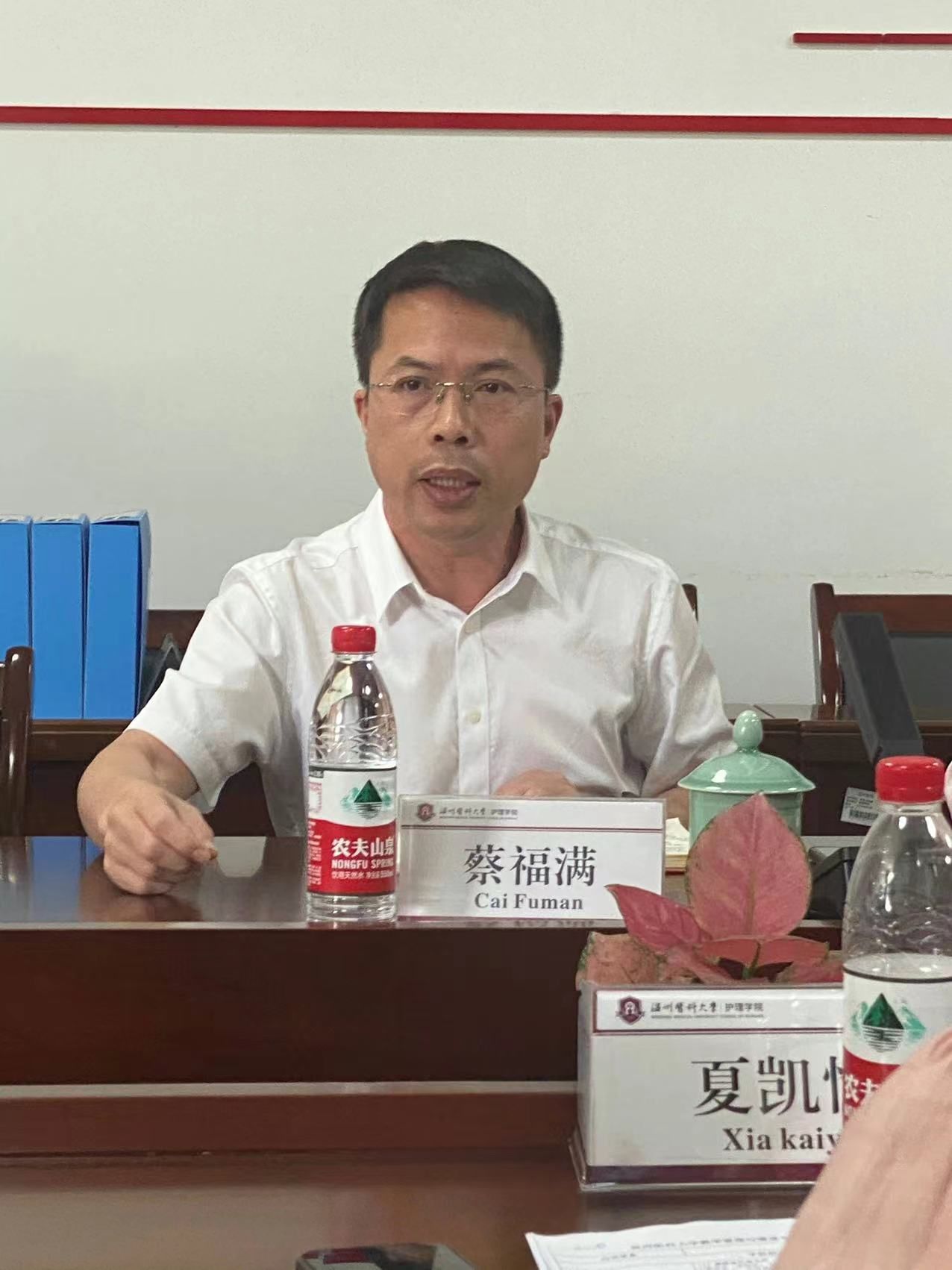 为扎实推进新一轮本科教育教学审核评估工作,4月30日上午,第一临床医学院(信息与工程学院)教学部主任夏凯愉、校级督导专家杨丽丽、教学部相关老师一行8人莅临52AV 开展护理学院互查互评工作。52AV 院长蔡福满、副院长黄小琼、教研室主任及教学办相关教师参加会议。会议由52AV 教学办副主任黄天烨主持。