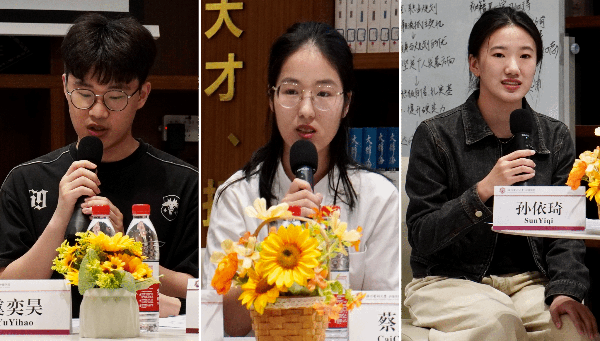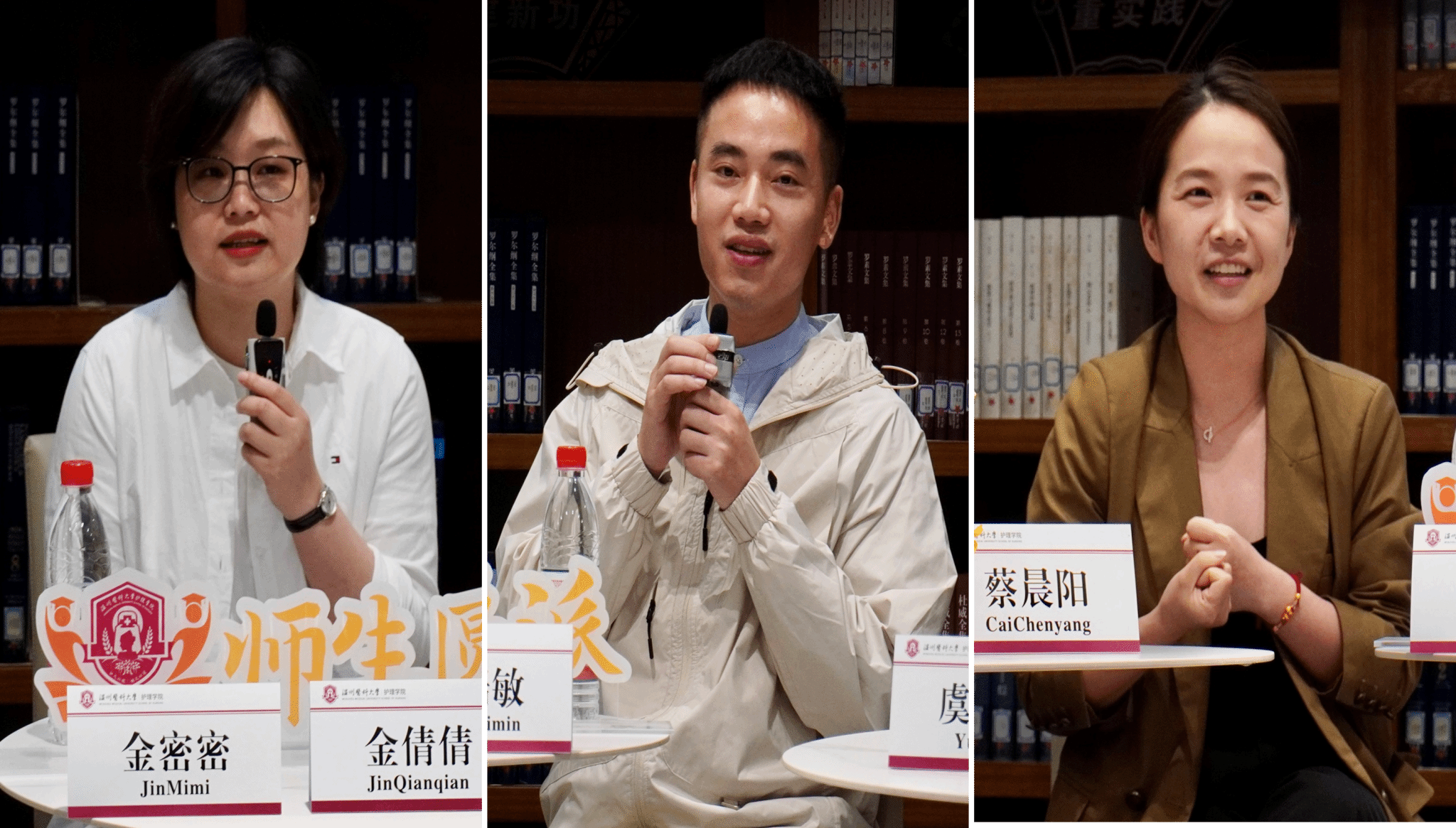 虞奕昊同学成功考研上岸首都医科大学,在临床工作中,他接触不同的病人、病症,同时对护理学术科研具有浓厚的兴趣,使得他看到了广阔的护理发展前景。考研过程中他建议大家注重身体素质健康,为学习提供至关重要的后备保障。蔡晨阳同学已被温附一录取,面对助产学严峻的社会现状和就业形势,她指出机会要掌握在自己手里,只有熟练掌握专业知识,才能在临床工作中不怯场,同时对自己有明确的职业规划,不断发现自己的特长,调整心态面对就业难题。考入温附二编制的孙依琦同学从自己实习考编的经历入手,分享了自己在临床工作中碰到的疑难杂症、紧急抢救的情况,校园社团活动中抓住每次机会,不断提升沟通、自主解决问题的能力。