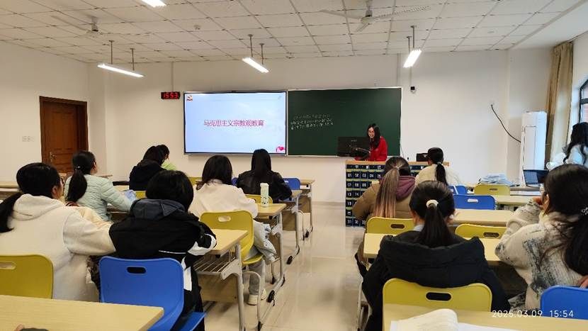 首先,邹奕瑄部长为大家讲述了马克思主义宗教教育的相关内容。从非法宗教行为,到大学生禁止行为,她讲述了如何树立正确的宗教观,以及非法宗教行为带来的一系列危害。