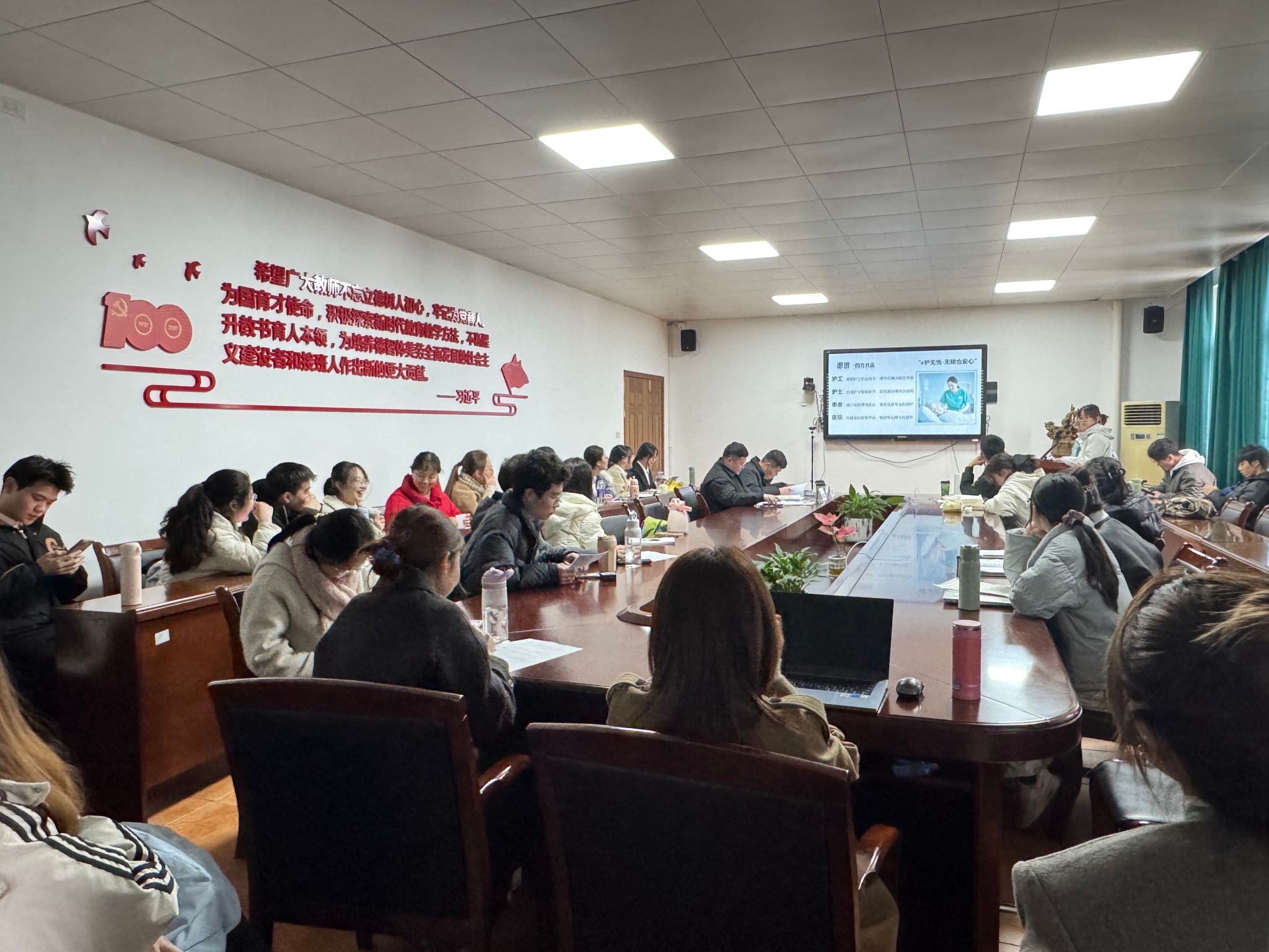 2025年2月25日下午4时,52AV 2025年国际大学生创新大赛学院交流赛在茶山校区顺利举行。本次交流赛邀请到校研工办副主任陈晓忠老师、第一临床医学院团委副书记曹博智老师、国际教育学院学工办副主任孙磊老师担任评委,学院团委书记叶星老师、各项目指导老师到场观摩交流。此次活动汇聚了护理领域创新力量,通过团队展示与专业指导的双向互动,展现了护理学生的创新思维与实践能力。