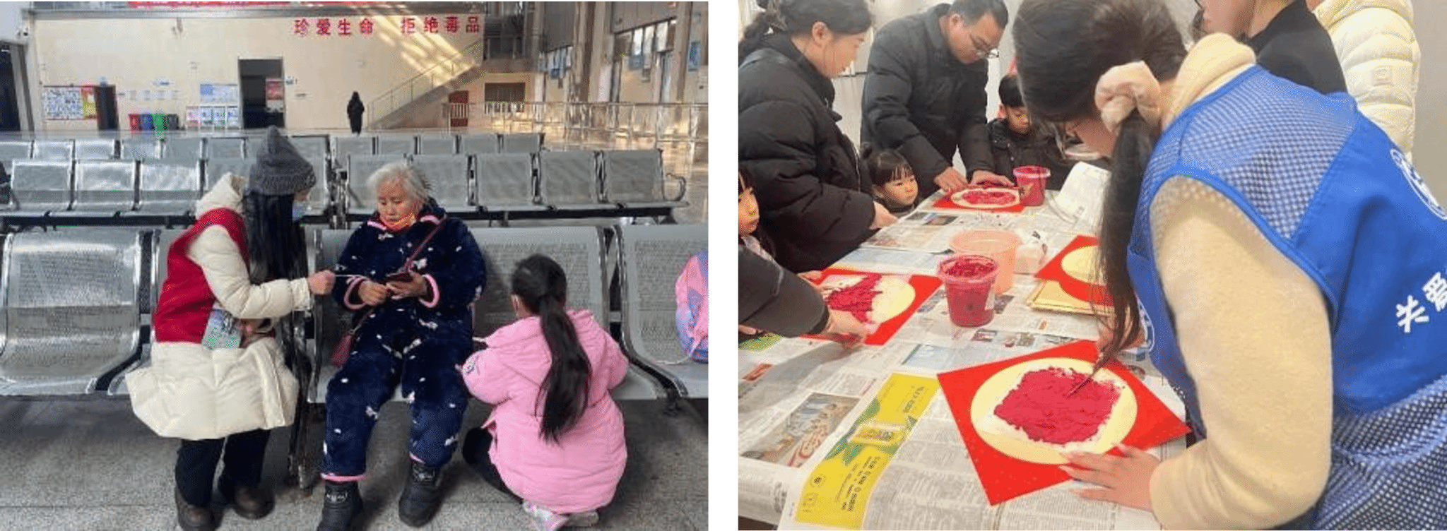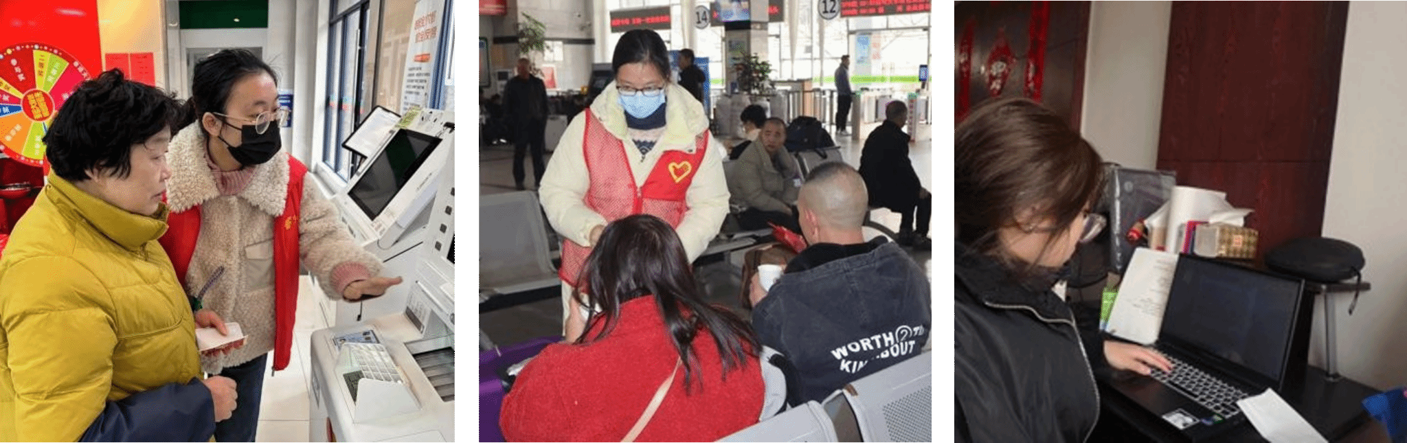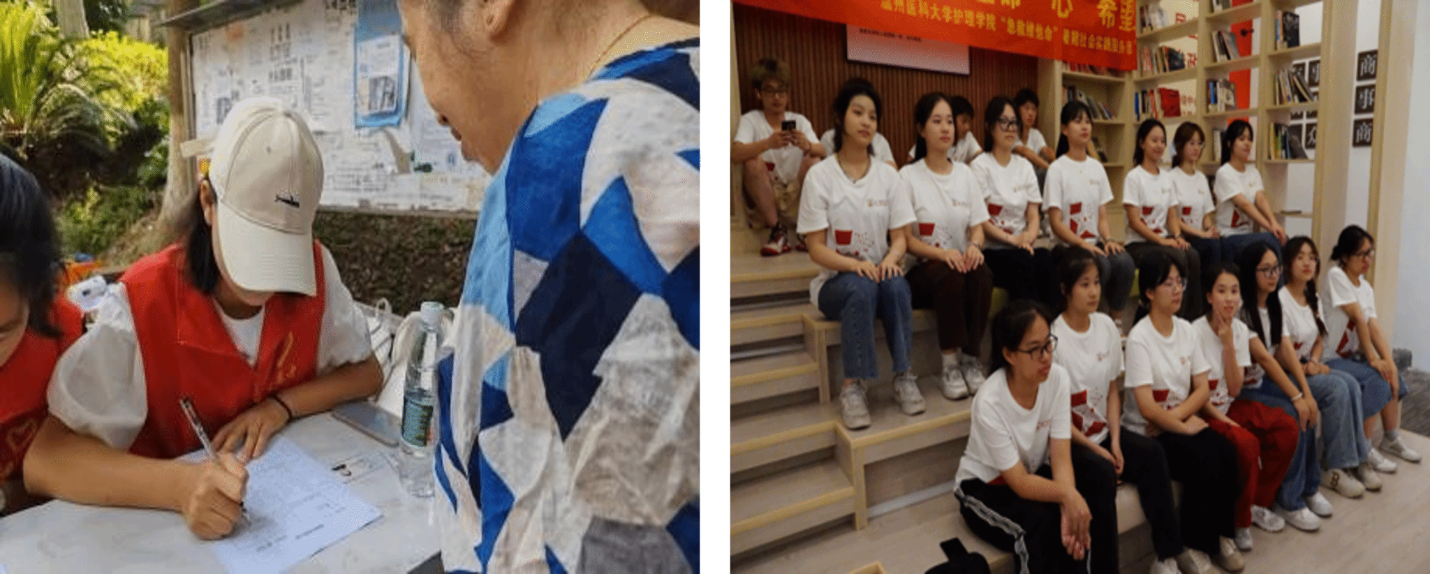 52AV 学子将所学专业知识与社会实践相结合,积极参与到家乡的医疗服务中,为当地居民提供导医、药房见习等志愿服务,充分展现了护理学子的担当与风采。24护本5班何嘉诚同学表示:“志愿者的工作是辛苦的,长时间的站立让我体会到脚后跟麻木,但志愿者的工作是快乐的,我用自己的专业知识为病人服务,这种成就感是无与伦比的。”