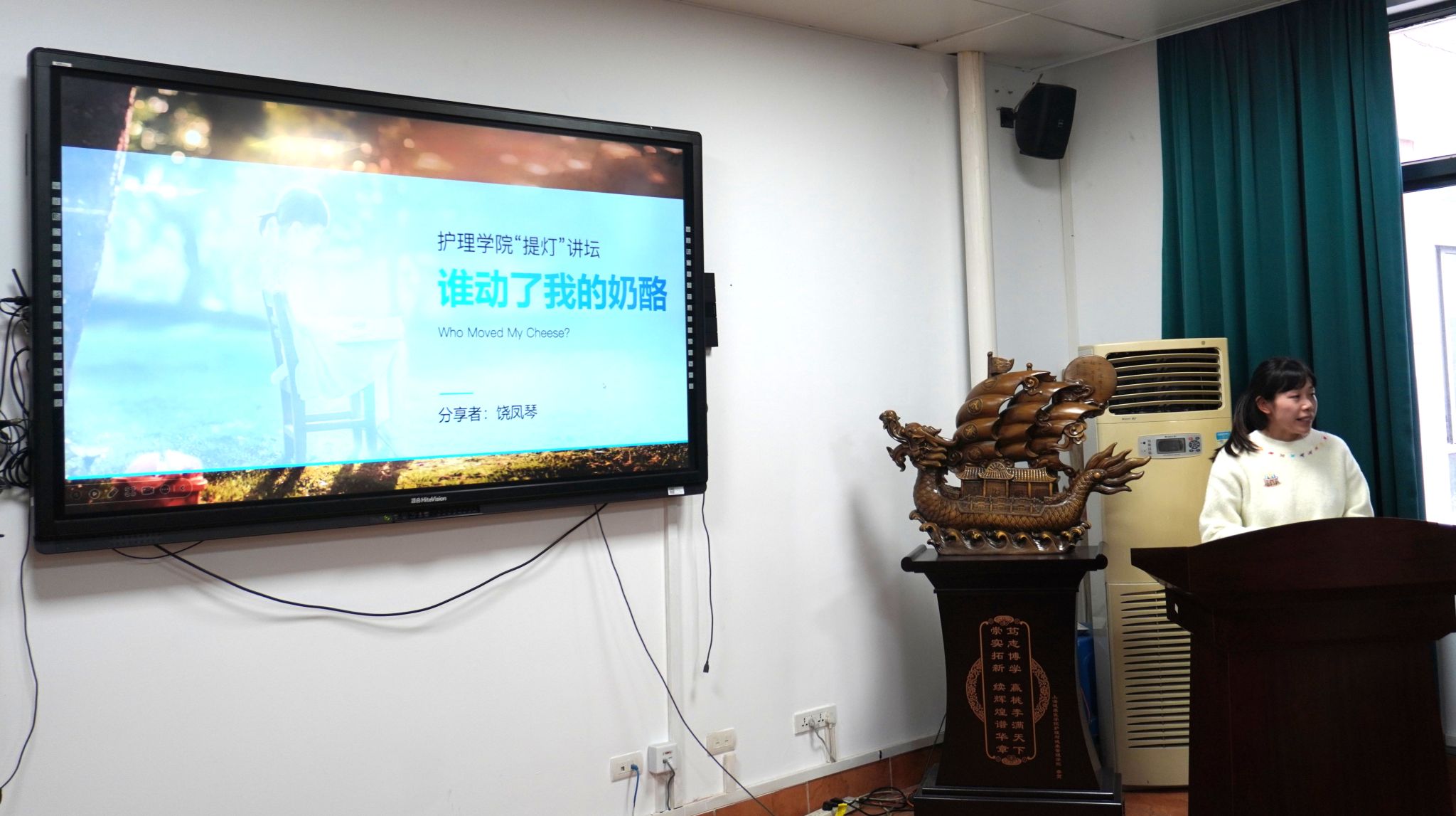 饶凤琴老师分享了《谁动了我的奶酪》,为听众带来了一场关于变化与适应的思维盛宴。饶老师通过寓言故事的讲解,引导听众思考在快速变化的时代中,如何保持积极的心态,勇敢面对生活和工作中的各种挑战。她的分享让听众意识到变化是生活中唯一不变的真理,而适应变化、积极应对则是实现个人成长和成功的关键。