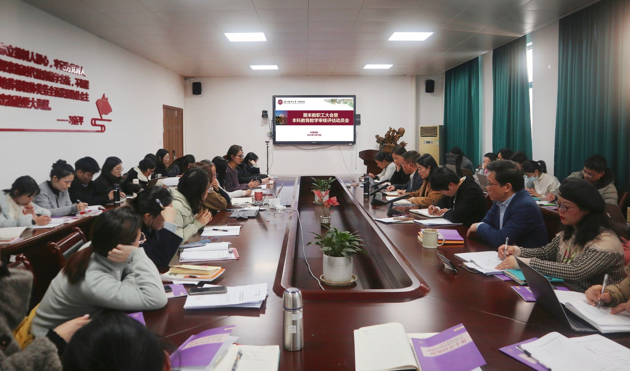 蔡福满院长对学院一年来在党建思政、文化宣传、人才引育、专业及学科建设、国际化合作以及社会服务等方面所取得的一些重要成绩进行了回顾,并部署2025年重点工作,强调要认真准备本科教育教学审核评估工作,围绕以评促进、以评促改、评建结合的原则,进一步提高护理本科人才培养质量;要与护理学国家一流专业、助产学省一流专业建设相协同强化从课程、教材、师资及实践等人才培养关键环节中找问题、补短板,进一步构建多元发展、特色鲜明的人才培养方案;要积极打磨、进一步完善省级教学成果奖申报书,力争在专业建设标志性成果上有所突破。要提前谋划2026年第六轮学科评估工作,继续加大高层次人才引育力度,奋力冲刺国家级科研项目,努力凸显国际化合作办学特色,积极拓展社会服务范畴,推动学院各项事业高质量发展。