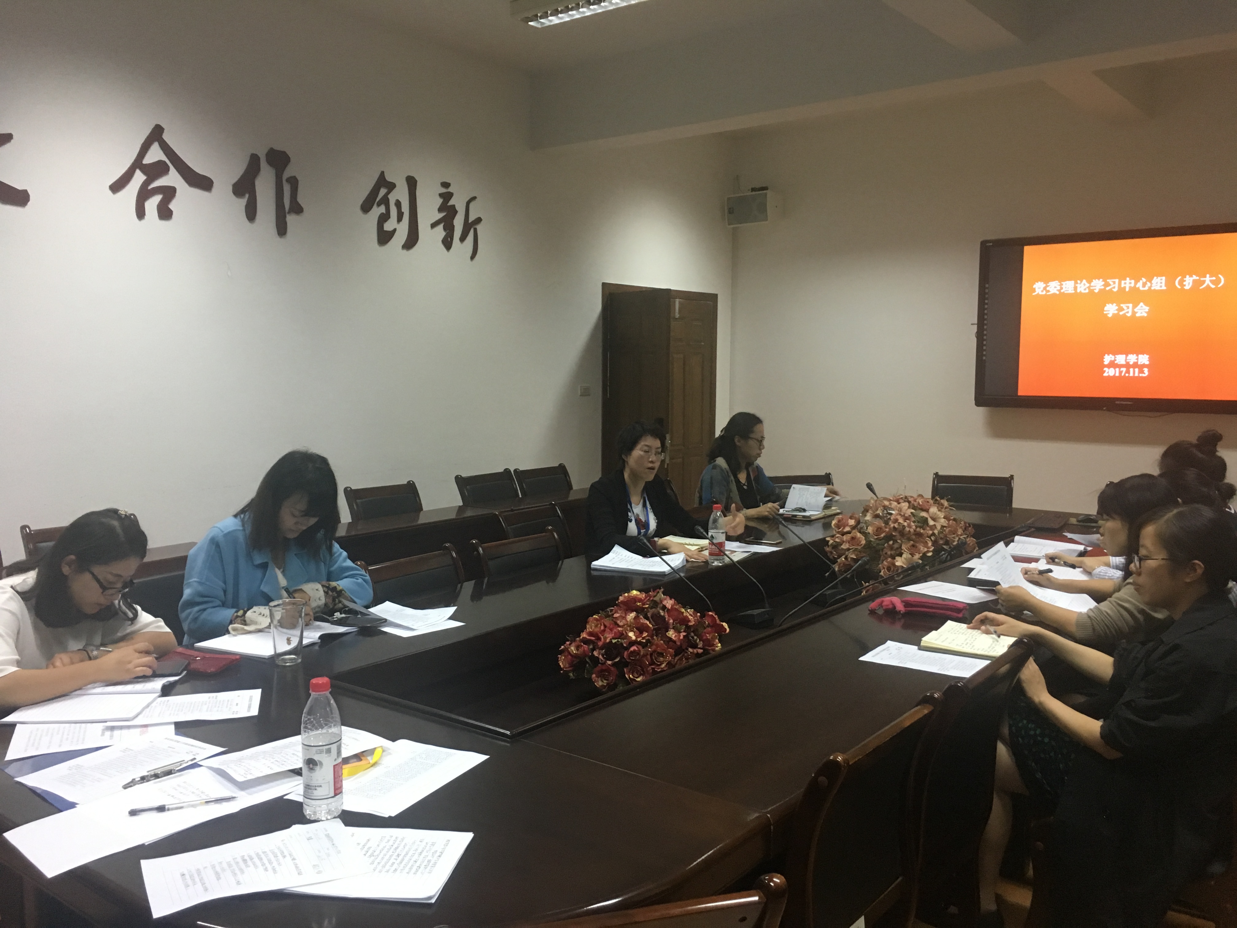 11月3日下午,52AV 召开党委理论中心组(扩大)学习会,专题学习十九大精神。学院党委书记陈慧主持会议,党委理论中心组成员、各党支部书记参加会议。