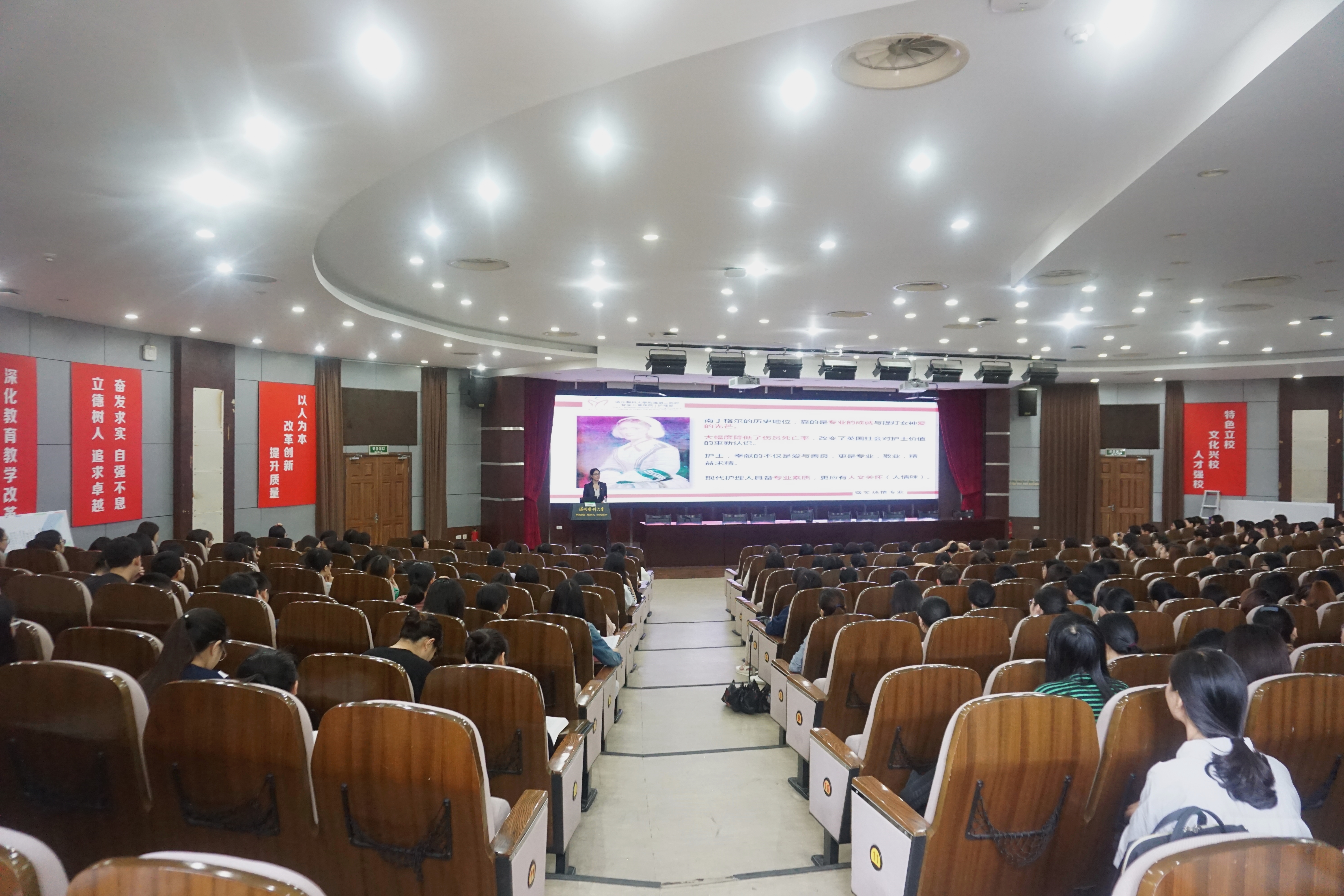6月15日,52AV 在旭光厅开展2018届毕业生下点前实习教育,附属第二医院护理部主任张春梅、附属第一医院护理部副主任徐小群应邀出席,为541名2018届毕业生做讲座。