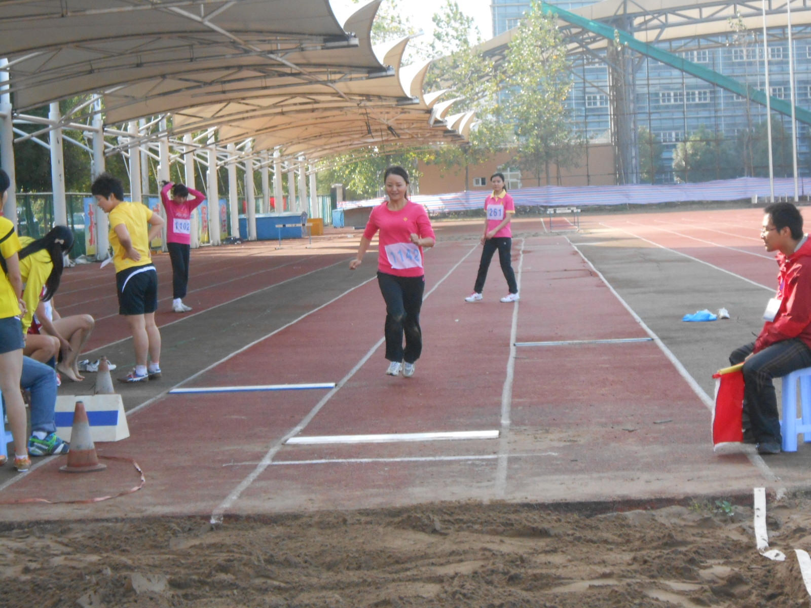 11月11号上午9点,在跳远场上,代表52AV 参赛的吴东方老师带着笑容轻松上阵。站在起跑的地点,深吸一口气,承载着老师和同学的希望,用力向前跑,奋力一跳,轻盈地落在了沙坑里,这样反复努力。