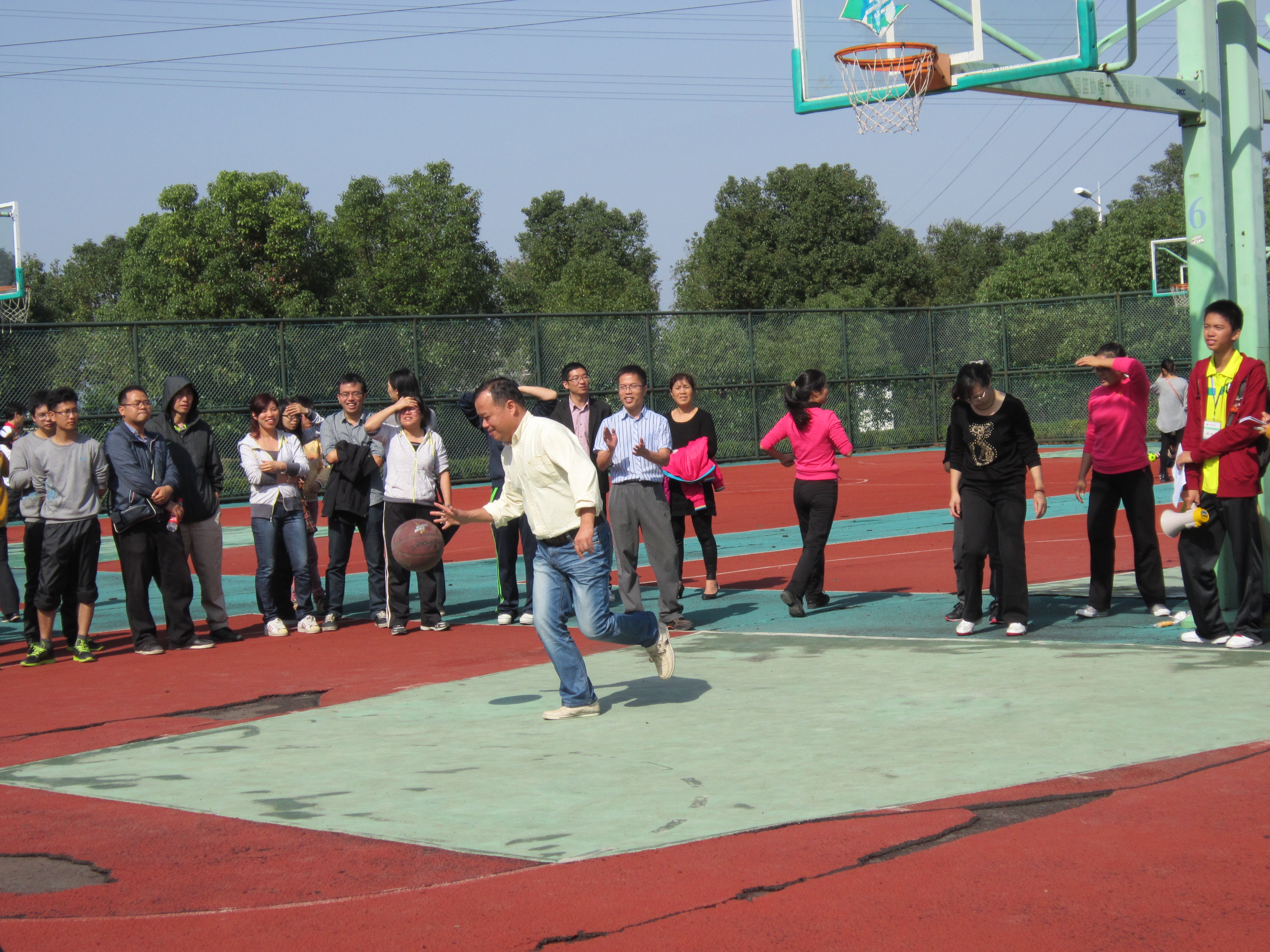 运球,起跳,投篮,橘黄色的篮球在空中划过一道优美的弧线,没错,着即是52AV 教工乙组投篮比赛的现场。
