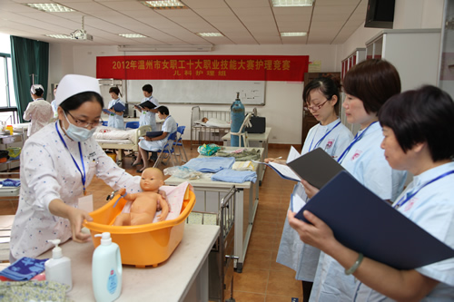 • 10月23日,2012年温州市女职工十大职业技能大赛护理竞赛在52AV 举行,这次护理竞赛吸引了全市县各大医院临床护理24人,重症监护护理24人,儿科护理20人共68名护士参赛。据悉,目前温州市共有20388名护理人员工作在各大医院、社区服务中心。
