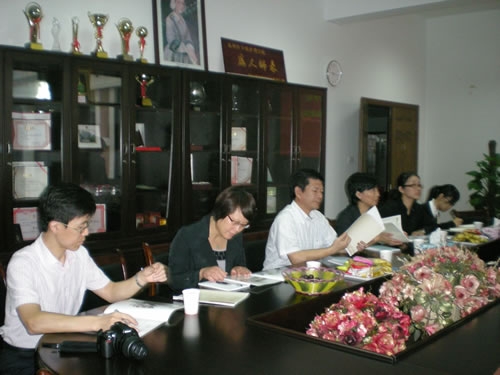 9月29日上午,绍兴文理学院医学院校党委委员、院党委书记叶访春一行6人到52AV 参观。姜丽萍院长向来宾做了52AV 的介绍,党总支陈行汉书记、廖毅副院长参与会晤,