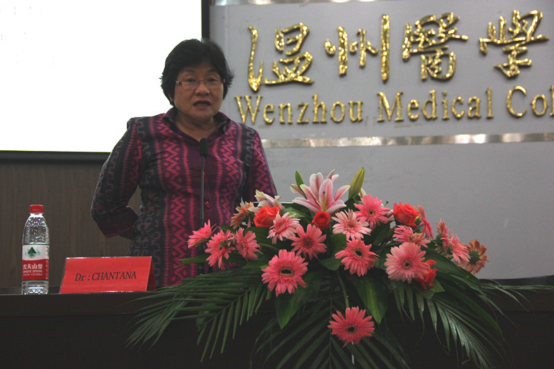 犹记得那位和蔼可亲的来自东方大学的戴娜可博士,她首先简单地向大家介绍了一下泰国的基本信息,其占地与上海的占地领域差不多。其次,她告诉大家,在泰国,护士分为5个等级。其中一级护理主要从事于乡村服务区,二级护理针对于社区护理,而特殊护理主要是面向于小孩与精神护理方面。她还向大家简述了东方大学四年制护理学生与温州医学院的护理学生不同——泰国东方大学的学生每学完一项护理专业知识随即去医院或社区实习。接着戴娜可博士为大家展示PPT,当中,有着不少师生共同欢笑的画面。看着照片中的师生们个个洋溢的笑容,在座的每一位似乎都能感受到东方大学的异国风情。此外,为了培育浓厚的52AV 的文化氛围,学校每一年都会在5月12日这个特别的日子里举办护士节,并为毕业就职的护理学生授帽、点灯,以此来纪念提灯女神,来传承护理火焰。