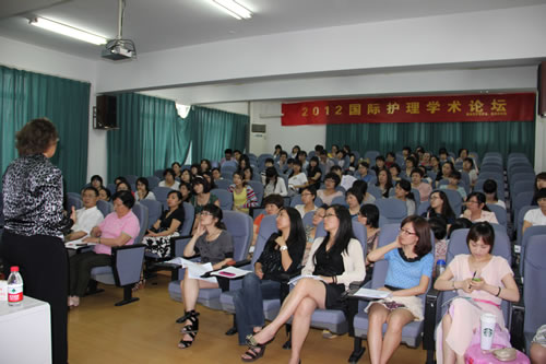 Diane Heliker教授多年来从事老年护理的研究,讲座围绕老年护理中长期照护的安全问题,介绍美国不同形式的老年机构养老模式,强调系统评估老年人的重要性,探讨如何针对不同文化背景的老年人进行全面的有针对性的个性化的整体照护。参与讲座的老师、学生也针对讲座内容与各自感兴趣的话题与Diane教授进行了愉快的交流。会后,姜丽萍院长代表52AV 赠送礼物以表示对Diane教授的感谢。