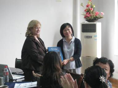 10月19日上午katie Capitulo博士来院做《循证护理》讲座,她作为一位“罗伯特·伍德·约翰逊” 执行护士,直接管理“适应文化背景护理领导学院”。此行是她第5次来温州。她是52AV 姜丽萍院长以及温州护理界专家的亲密合作伙伴,她们共同合作了“健康问题解决项目(PSBH)”。在讲座中她列举了许多临床常见的病例,以及如何运用循证护理来处理这些问题,期间姜丽萍院长作了补充解释:循证护理是一种思维方式,任何工作均基于临床,基于实践。整个讲座虽然简短但会场气氛活跃,老师们就自己的一些困惑做了一一提问。