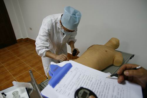 竞赛项目分为内外科操作、病史采集与体检、急救技术与辅助检查判断及分析三个内容,教务处吴丽惠副处长、52AV 廖毅副院长亲自到场指挥,赛场井然有序,考官们认真严谨、选手紧张兴奋,整个赛事顺利进行。